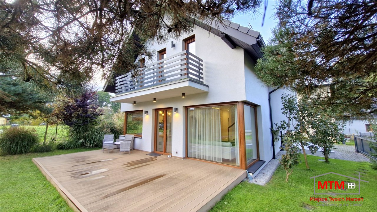 Działka o powierzchni 9,5 ara jest zadbana i zagospodarowana – budynek – nie jest to standardowa kostka – dom ma naprawdę wyjątkowy układ, który podkreśla jego nowoczesny charakter. Wnętrza są przestronne, jasne i funkcjonalne, zarówno pomieszczenia jak i ogród zapewniają dużo miejsca do życia i wypoczynku.