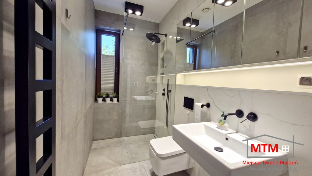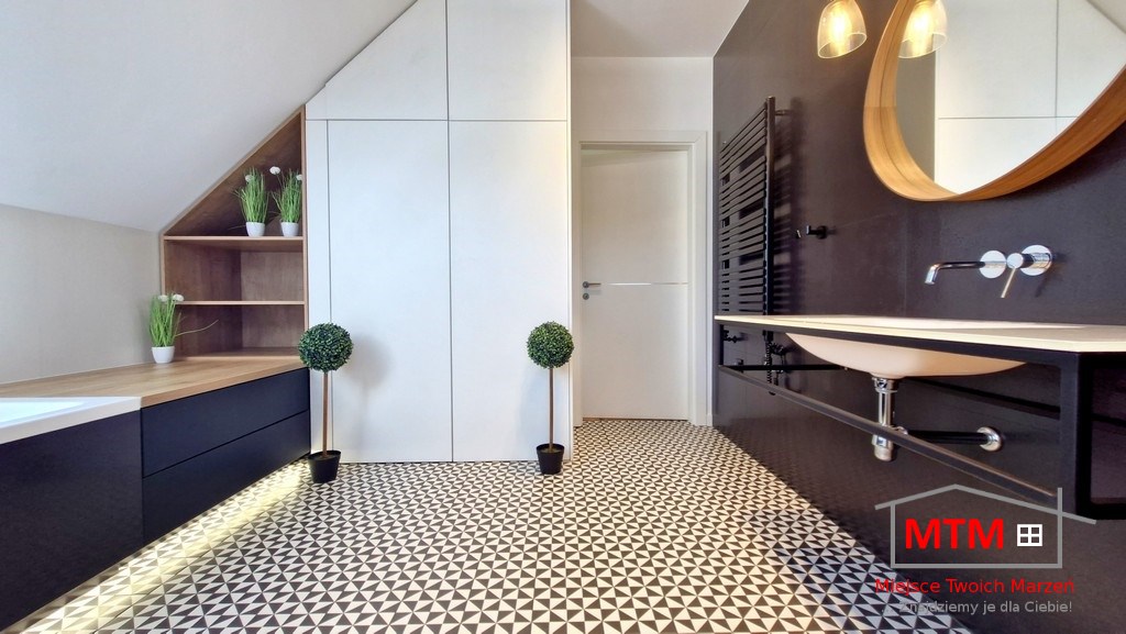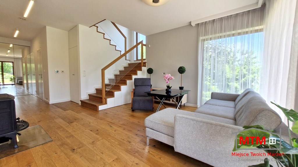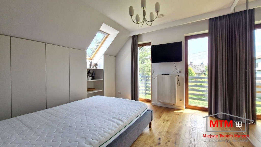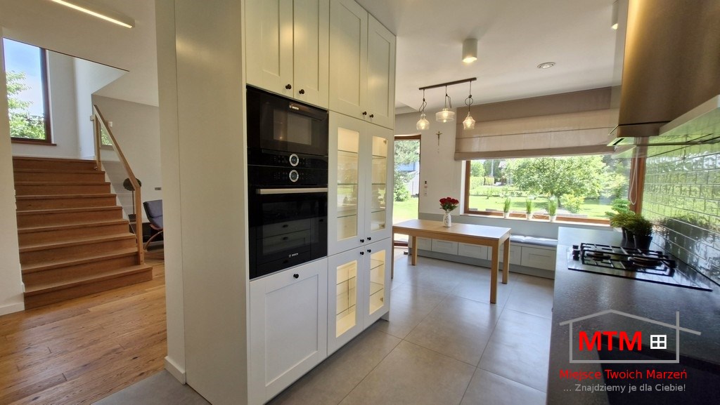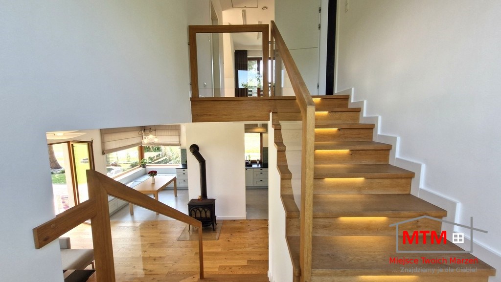 Działka o powierzchni 9,5 ara jest zadbana i zagospodarowana – budynek – nie jest to standardowa kostka – dom ma naprawdę wyjątkowy układ, który podkreśla jego nowoczesny charakter. Wnętrza są przestronne, jasne i funkcjonalne, zarówno pomieszczenia jak i ogród zapewniają dużo miejsca do życia i wypoczynku.